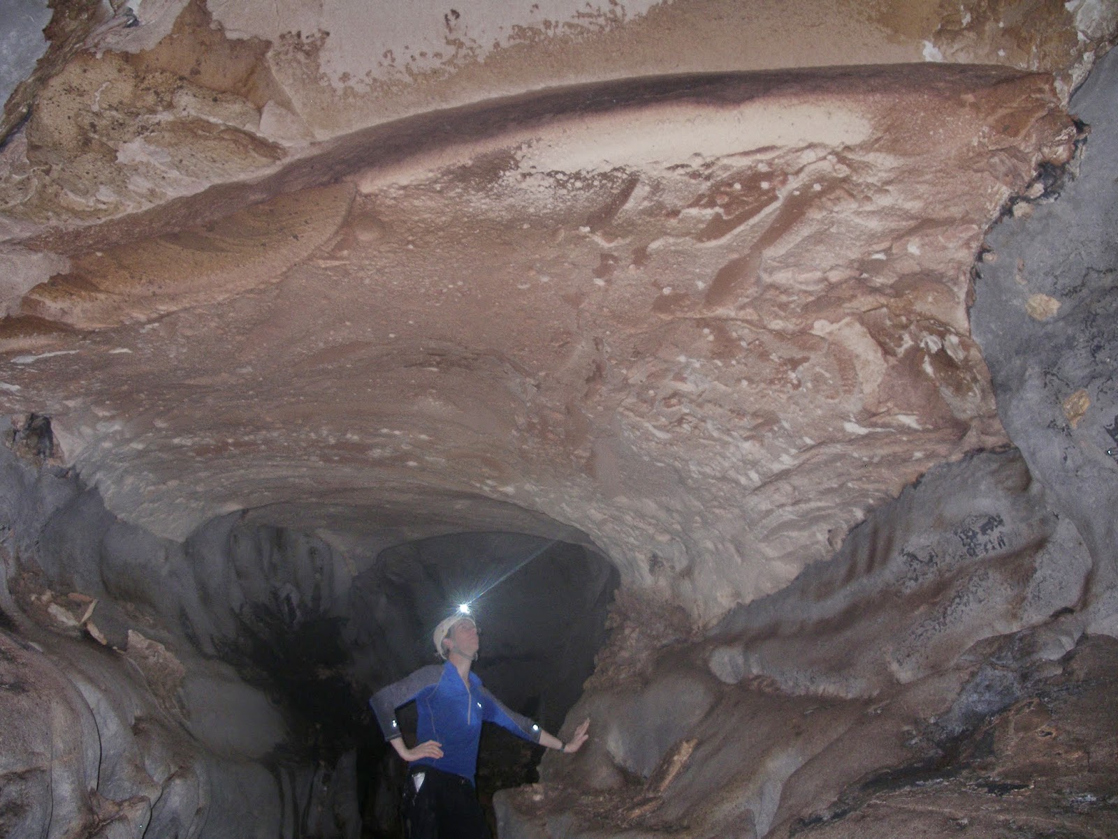 here they once filled this passage, but have been subsequently washed out, leaving remnants on the cave roof |